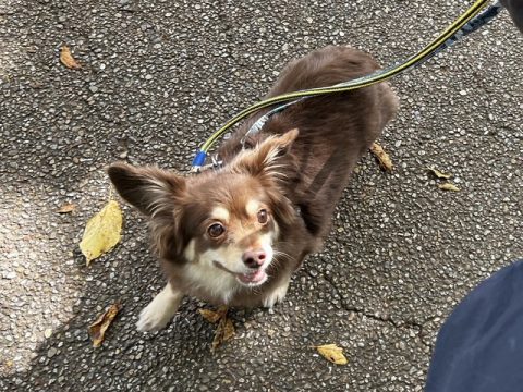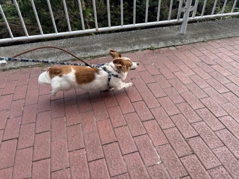 しっぽをフリフリさせてお散歩を楽しんでいました♬
