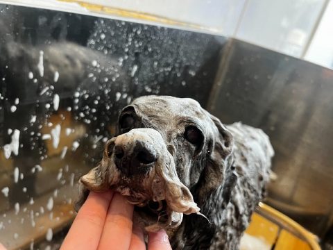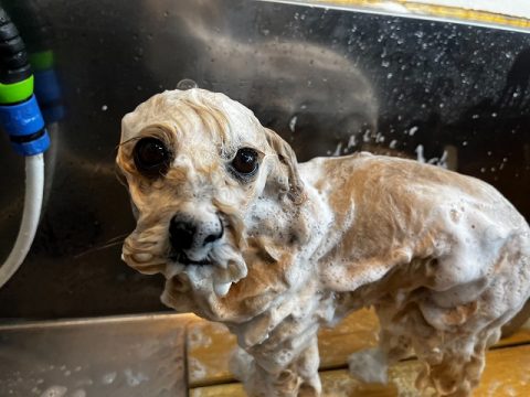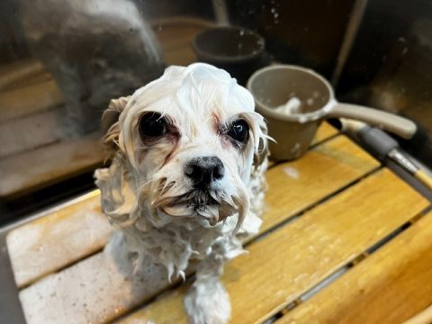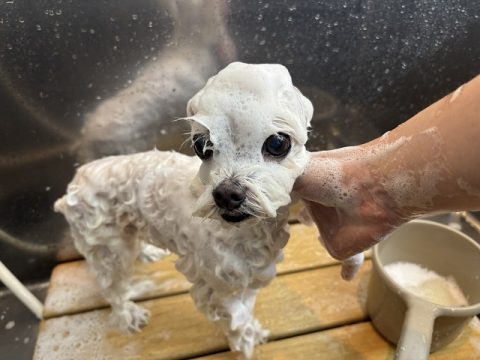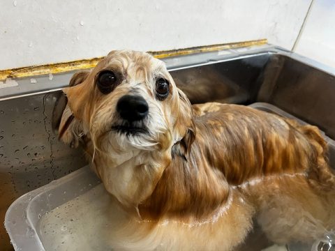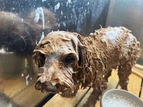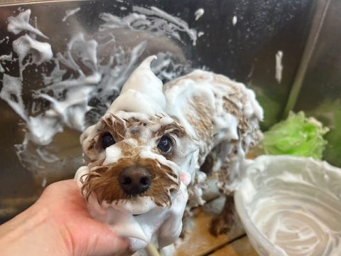たっぷり泡立ててシャンプーをして気持ちよさそうです(*^^*)