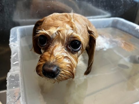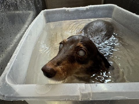 まずはオゾン浴をしてお散歩汚れを浮かそうね(*^_^*)