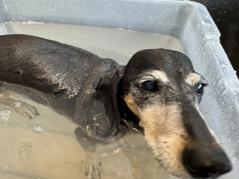 ナナちゃんはトリミングをしてスムースダックスみたいになったね(^.^)