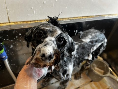 もこもこ泡のシャンプーで洗われて気持ちよかったね。