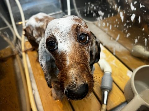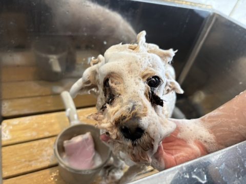 指の間まで綺麗にシャンプーをします🐾