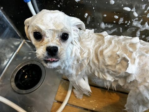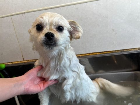 真っ白ヘアを目指して汚れやすいお腹の下や足先はさらに念入りにシャンプーをしようね!