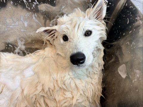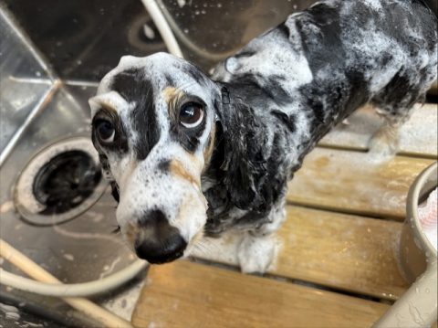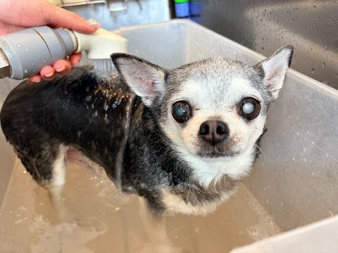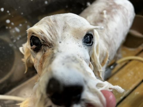 鼻の先からしっぽの先まで上手に洗えたね👏