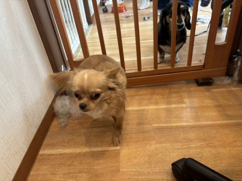 飼い主さんが見えなくなって少し寂しいワッフルくん😢