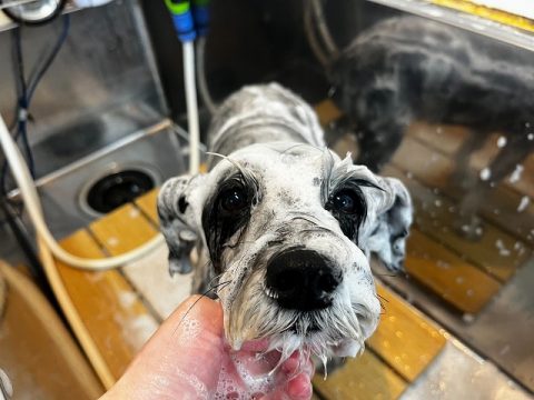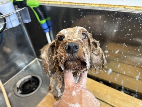 シャンプーで汚れやすいお口周りや足周りもしっかりと洗っていくよ🫧