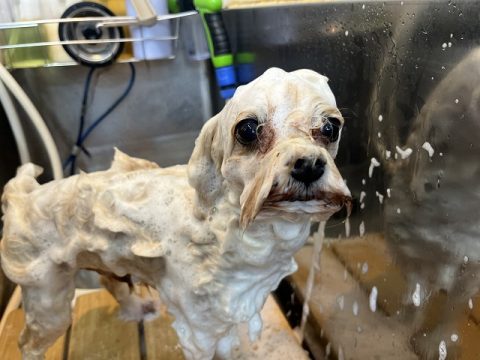 オゾン浴の後は念入りにシャンプーをして真っ白になりました🫧