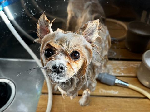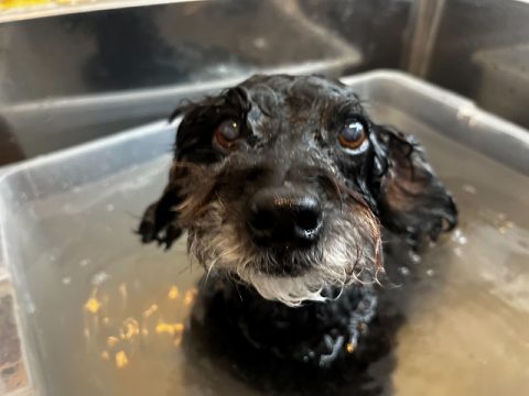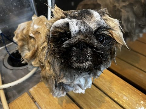 シャンプーもとってもお利口さんなペコちゃんです👅