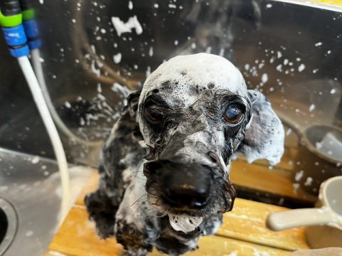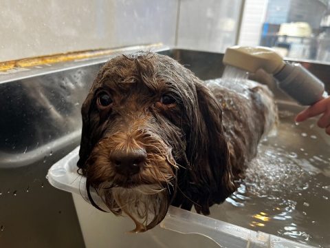 お散歩で汚れた足の裏やお腹の下は更に入念に洗って綺麗になりました🧼🫧