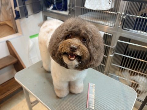 カットをしてまんまるお顔になったマロンちゃん🍀