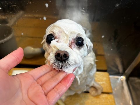 もこもこ泡でシャンプーをして気持ちいいね🐶♫