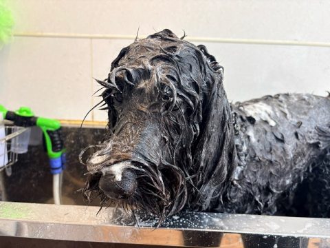 今日もシャンプーをする前にオゾン浴で細かい汚れを浮かせます!