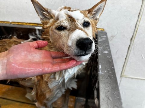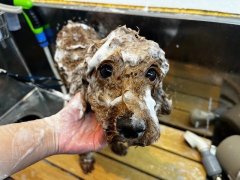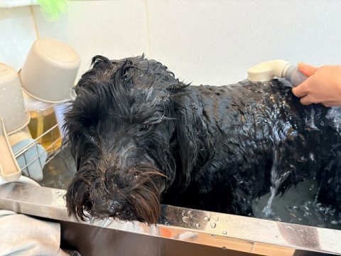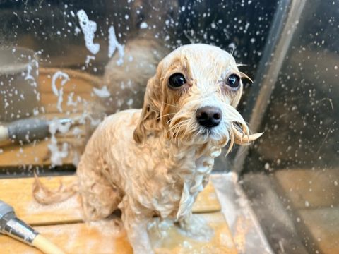 元気いっぱいにご挨拶できたらシャンプーから始めていこうね。