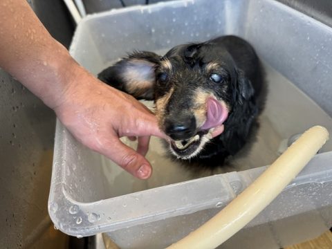 終わった後も元気いっぱいにスタッフに甘えていました🐶