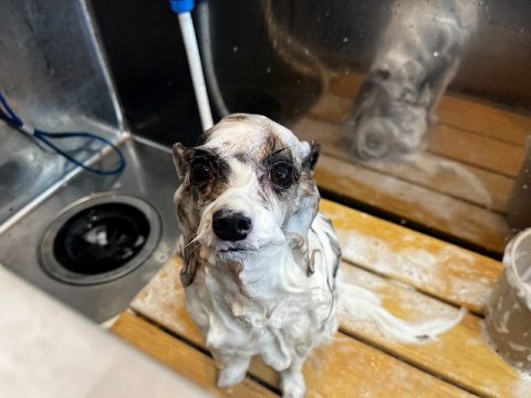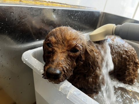 お散歩を済ませたら帰る前にシャンプーをしようね✨