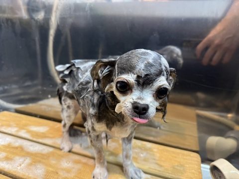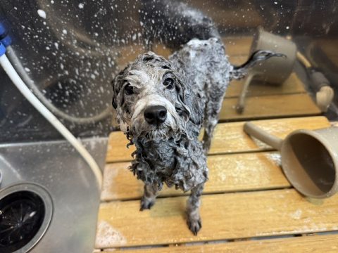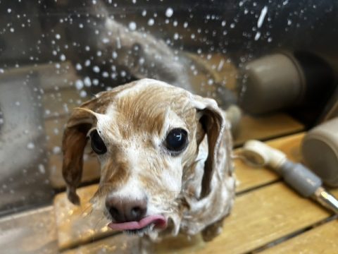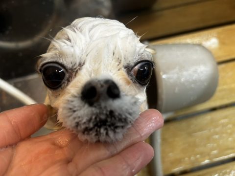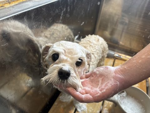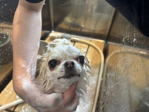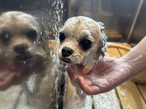 帰る前にシャンプーをしてお散歩でついた汚れを綺麗に落としてから帰ろうね🏠