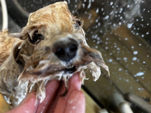 汚れがつきやすいお口周りや足先は、シャンプーで念入りに洗っていきます!