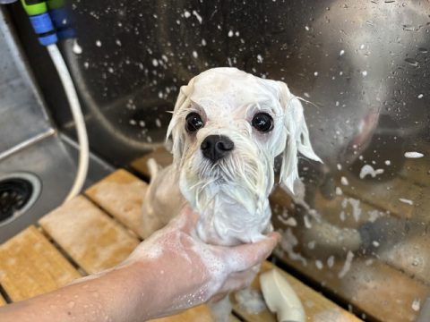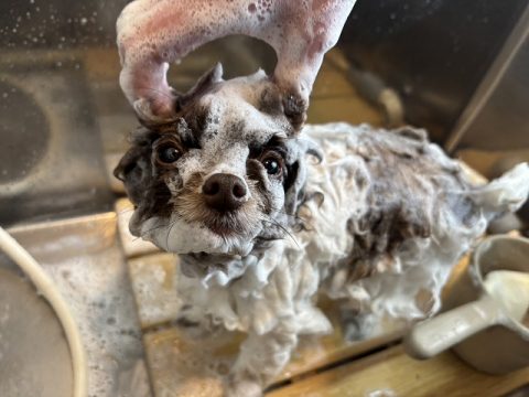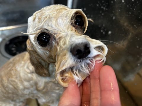皮脂が出やすい犬種なのでシャンプーは入念にしていきます🧽
