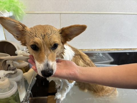お口の際まで全身丁寧にシャンプーをします!