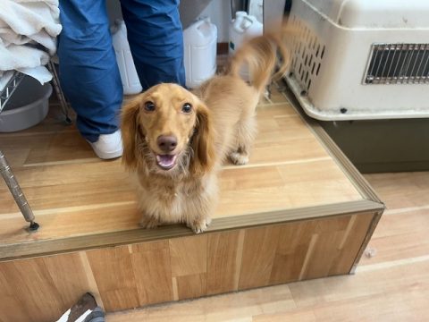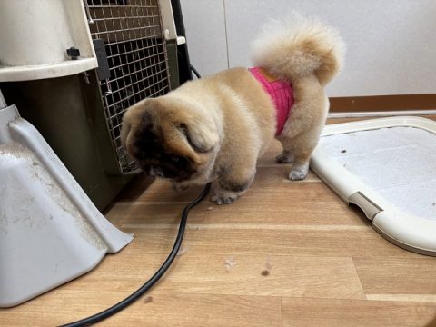 今日はトリミングをしてお家に帰る日です。