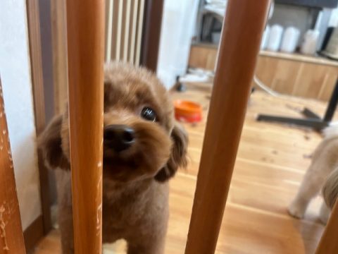 カット中は受付にいるスタッフをじっと見つめながらニコニコしていました👀
