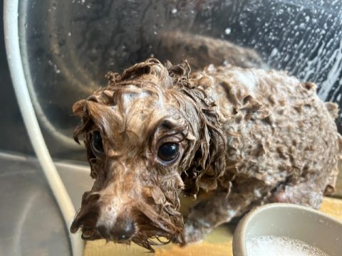 シャンプー中はうっとり顔のモカちゃん😊