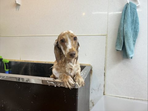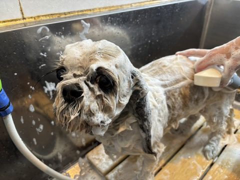 可愛くお写真が撮れたらシャンプーから始めていこうね。