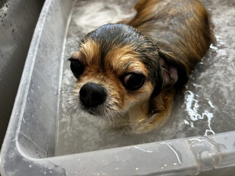 爪切りができたら早速シャンプーからしていくよ!