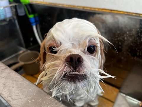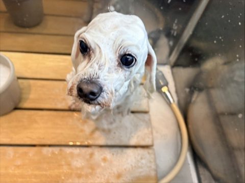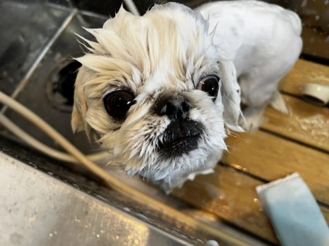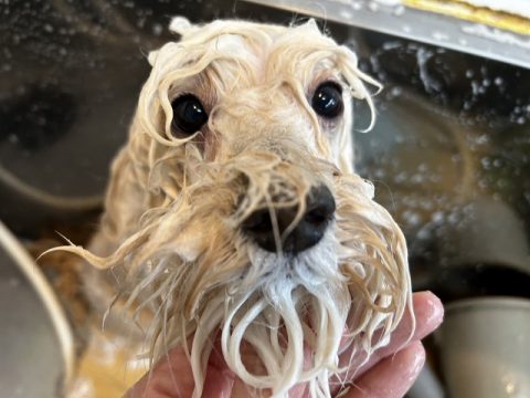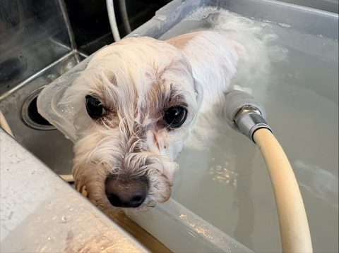 真っ白ヘアを目指して汚れやすいお腹の下や足先はさらに念入りにシャンプーをしようね!