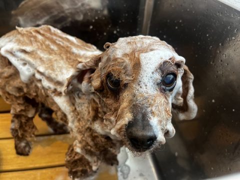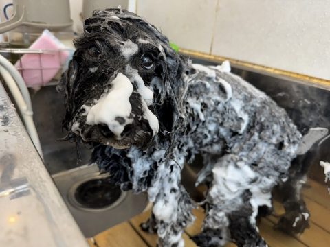 指の間まで丁寧にシャンプーします🐾