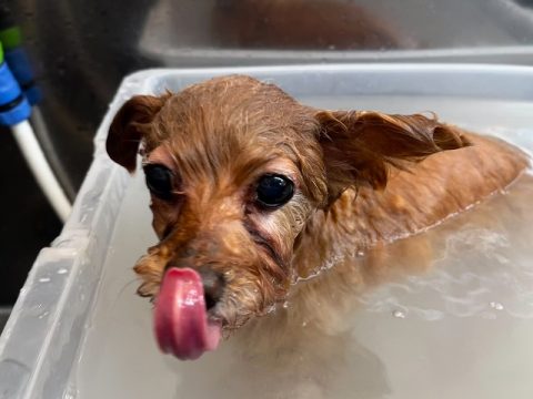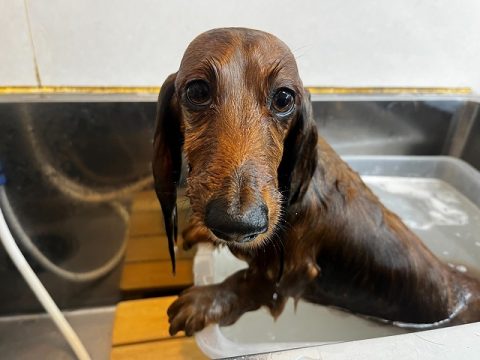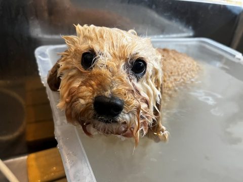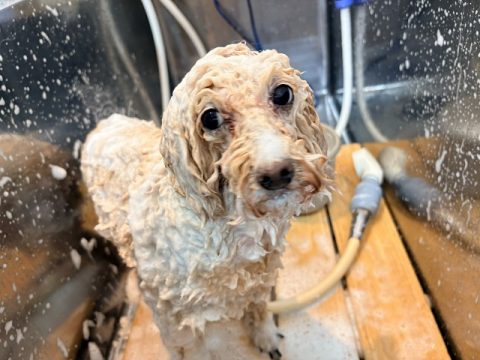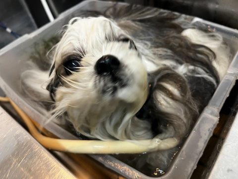抱っこでお写真を撮れたら早速シャンプーをします!