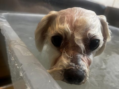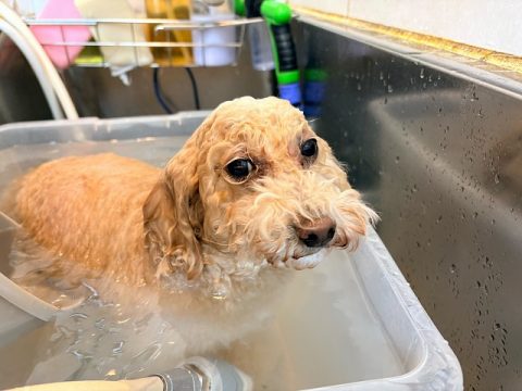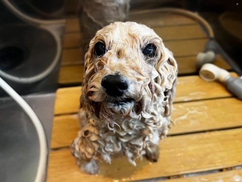 いつものようにシャンプーをしてお散歩汚れがスッキリ落ちたね🐶