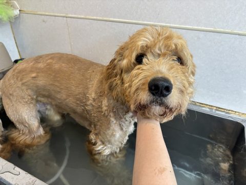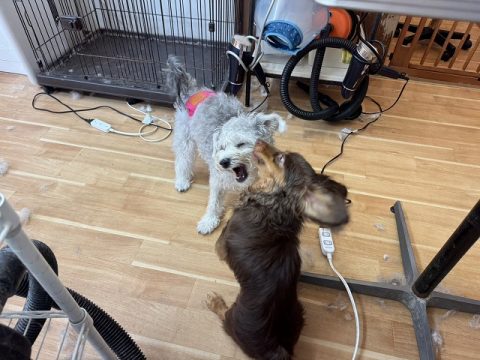 シャンプー中もお友達が気になるむぎちゃん👀終わったら沢山遊ぼうね🎶