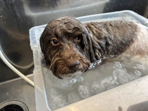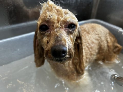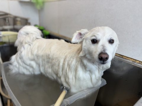 体もバリカンをかけてスッキリできたらシャンプーで汚れや毛を洗い流して行くよ🚿