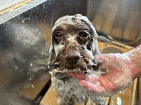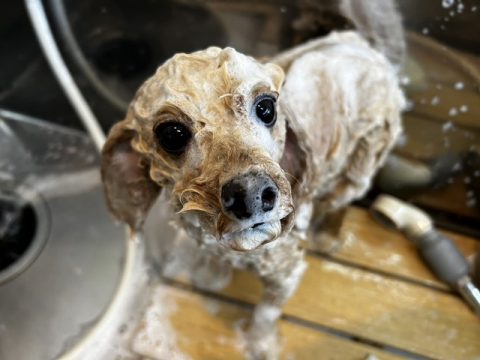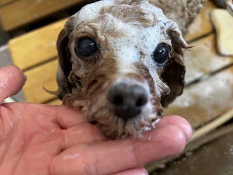 お顔から足先までシャンプーで丁寧に汚れを落としていきます!