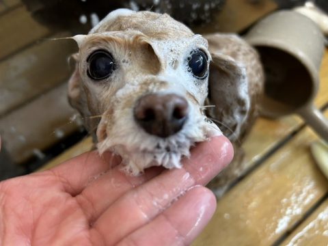 まずは、シャンプーで全身の汚れを綺麗に落としていきます♪