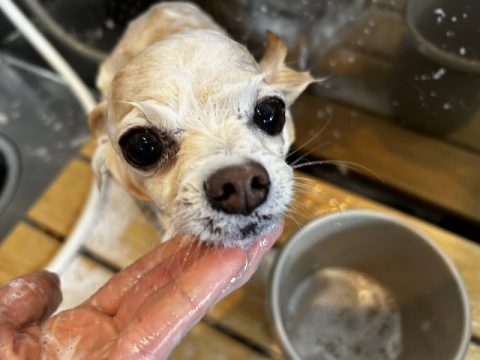 シャンプー中もかわいい舌を見せてくれています👀