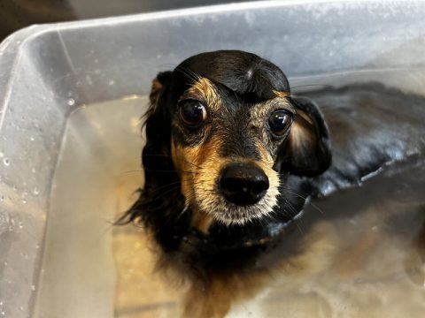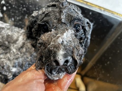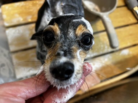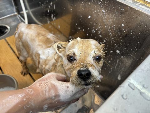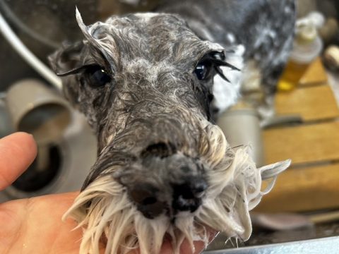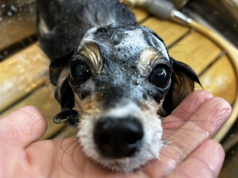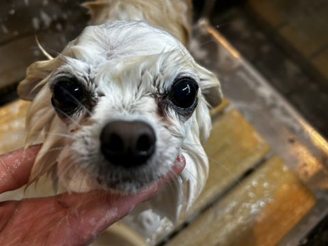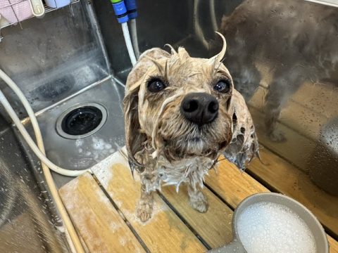 おりこうさんにオゾン浴できたら次は、シャンプーをしていきます。