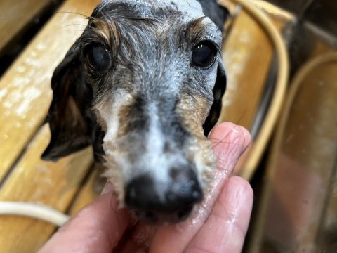 シャンプーで全身を洗ってお顔のシワの間まで丁寧に優しくゴシゴシ🧽