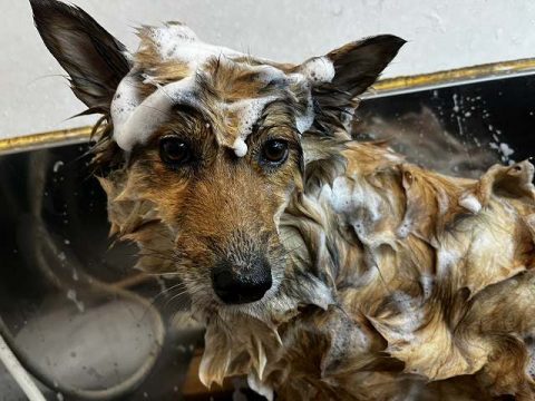 お口の中がスッキリしたらふわふわになるようにシャンプーをしていくよ🧼