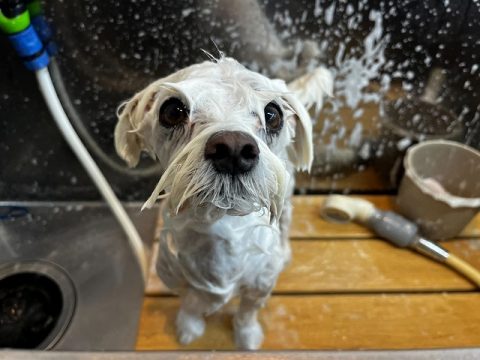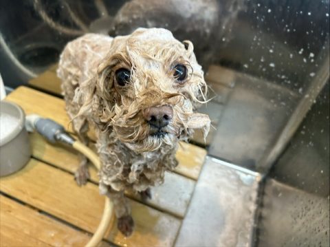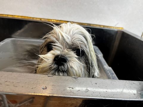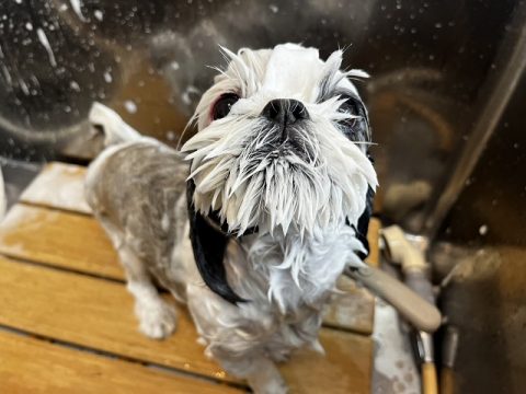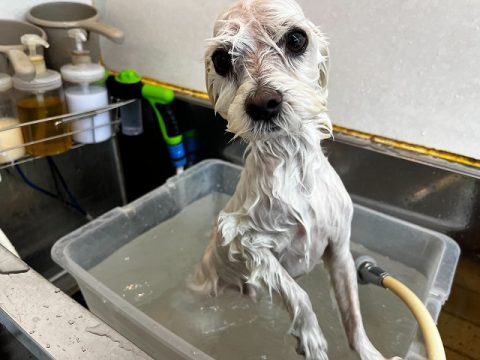 お友達のシャンプーが終わったら次はモコくんの番だね!