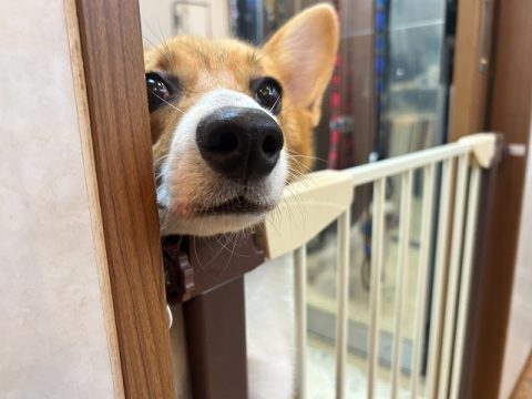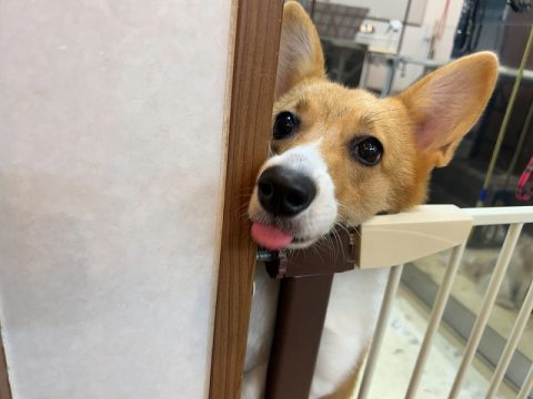 カット中は受付にいるスタッフをじっと見つめながらニコニコしていました👀