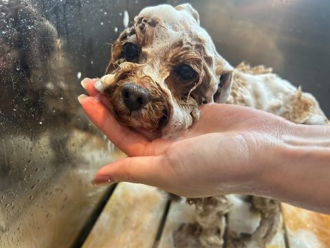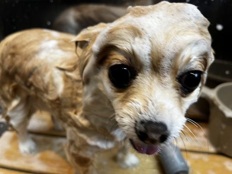 お散歩で汚れた足の裏も念入りにシャンプーをして全身きれいになりました✨✨