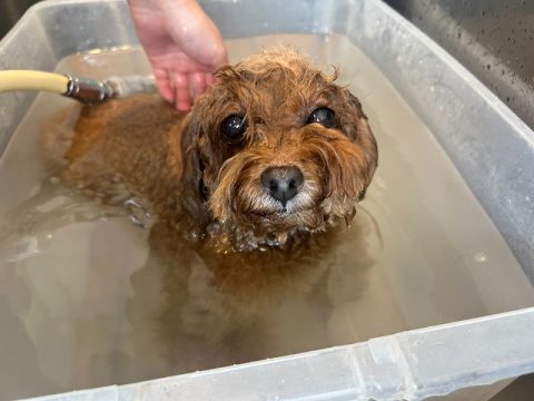 オゾン浴に入ってお散歩の汚れを浮かせます🛁