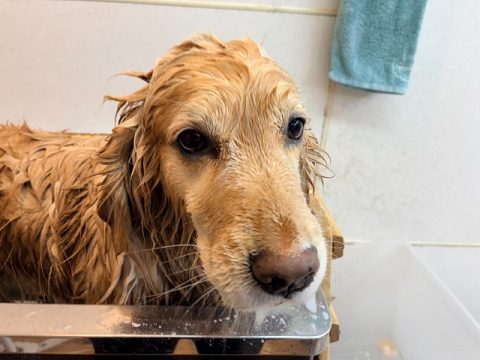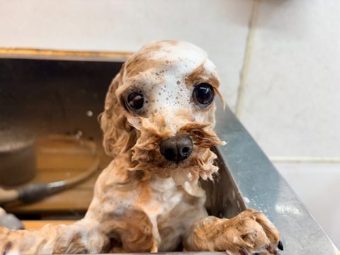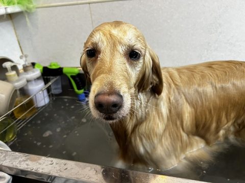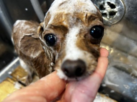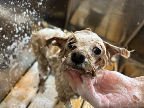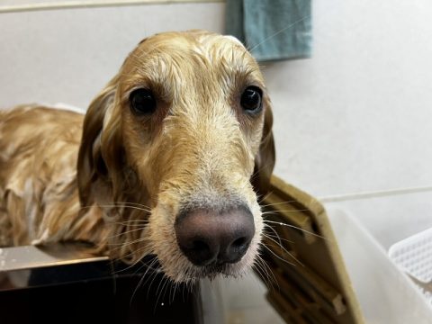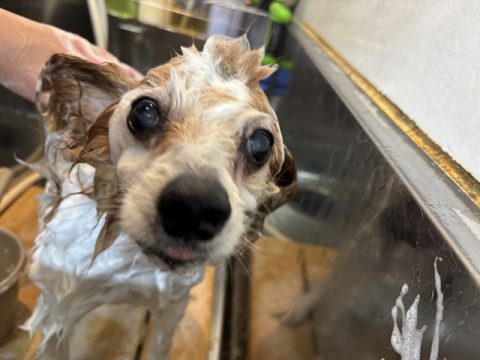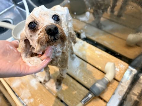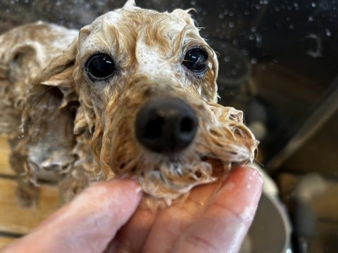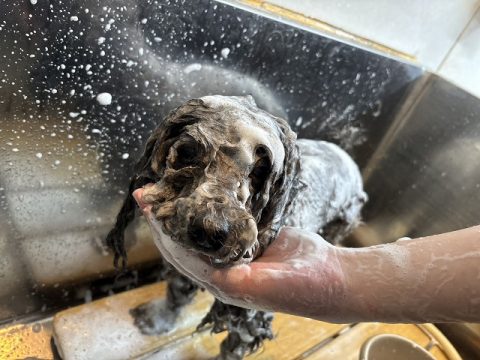 おりこうさんにオゾン浴できたら次は、シャンプーをしていきます。