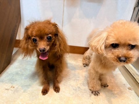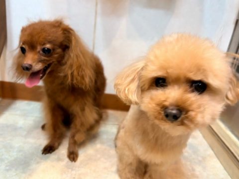 ちかちゃんとまるちゃんは仲良くシャンプーコースと部分カットで来店してくれました(⌒▽⌒)