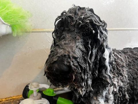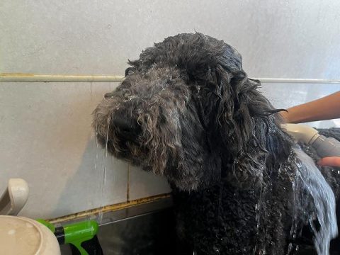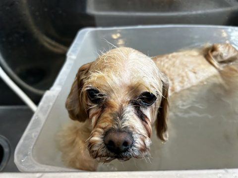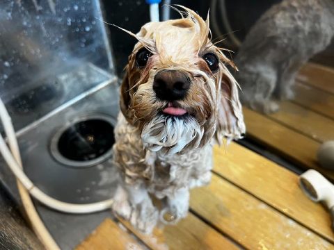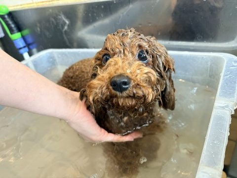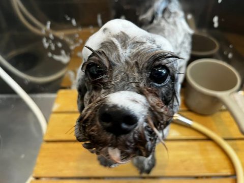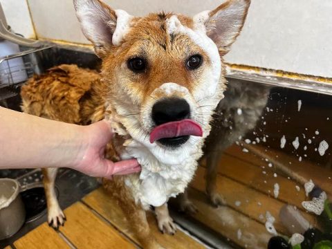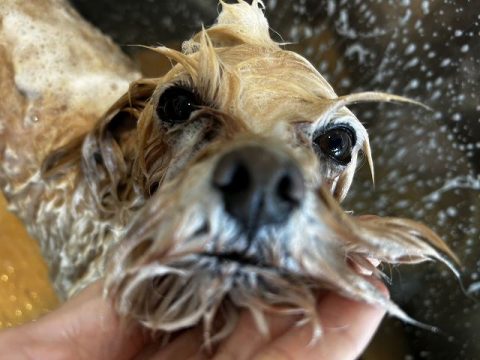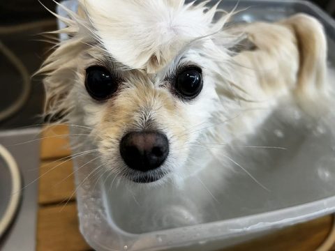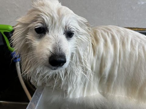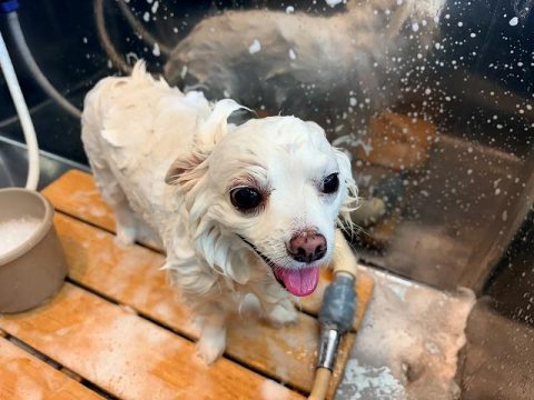 おすわりをしてお利口さんに全身洗うことができました🐶