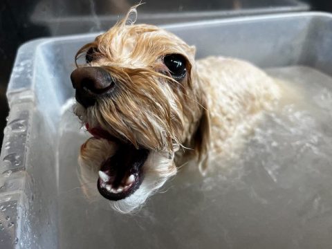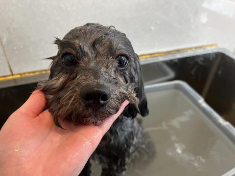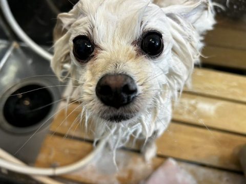 シャンプー中もお友達が気になるむぎちゃん👀終わったら沢山遊ぼうね🎶