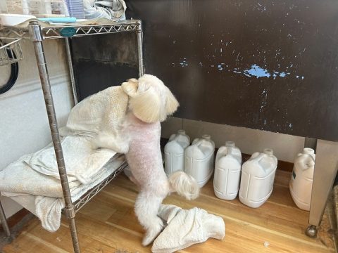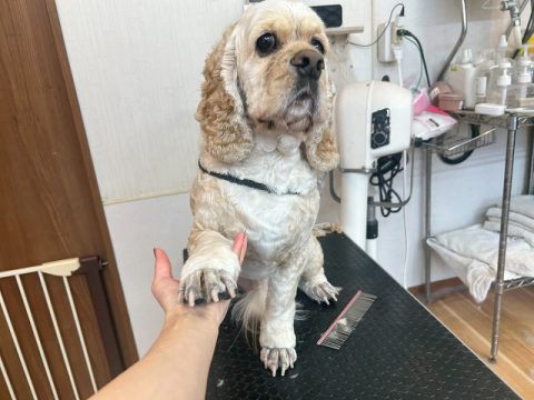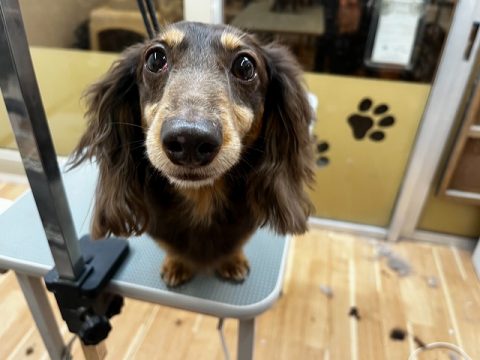 見慣れない場所と初めてのトリミングでドキドキです💕