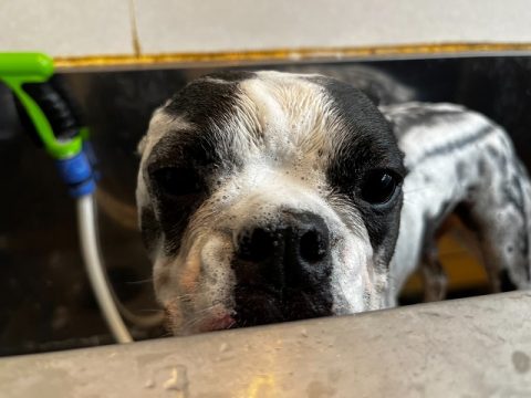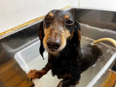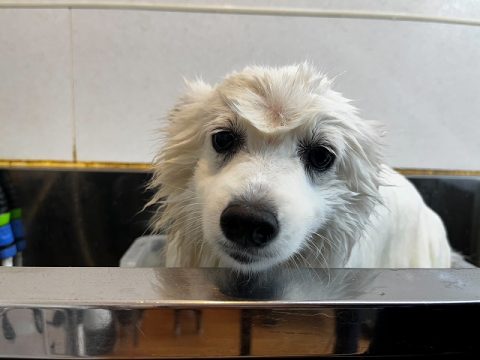 お散歩で汚れた体を丁寧に洗っていい香りになりました🌷